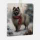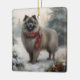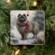 Keeshond Dog in Snow Christmas Ceramic Ornament