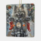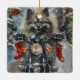 Keeshond Dog Riding Motorcycle Christmas Ceramic Ornament