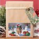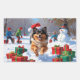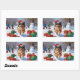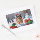 Keeshond Dog Running in Snow with Christmas Hat Rectangular Sticker