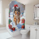 Keeshond Dog Running in Snow with Christmas Hat Shower Curtain