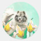 Keeshond in Tulips Painting Cute Original Dog Art Classic Round Sticker
