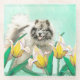 Keeshond in Tulips Painting Cute Original Dog Art Glass Coaster