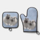 Keeshond Painting 2 Keeshonden Original Dog Art Oven Mitt & Pot Holder Set