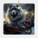 Keeshond Snowy Sleigh Christmas Decor Ceramic Ornament
