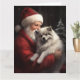 Keeshond With Santa Claus Festive Christmas Card