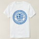 Men's white T-Shirt for the island of Kefalonia, Greece with the national flag of Greece inside an Aztec circle design. You can wear this T-Shirt if you're on a trip to Kefalonia or to remind you of your vacation. This summer design is also ideal for someone who is from this beautiful Greek island.
