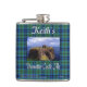 The flask itself is fine. It’s a cheap flask, obviously bought in bulk, however am prepared to overlook that. Given that it is a personalized item, I would have liked to have seen gift boxing instead of the generic packaging. Terrible printing, and/or quality. It’s a cheap, tacky vinyl. It is not cut straight and is also applied in a way that it is overhanging the bottom, causing the glue to catch on items and it will eventually roll and tear, damaging the wrap.