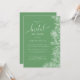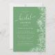 This invitation features white line-drawn flowers and custom calligraphy. The soft kelly green colour is the perfect backdrop for this invitation.