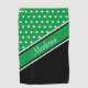 Kelly Green Polka Dot Black Diagonal Script Name Golf Towel