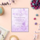 Elegant wedding save the date featuring your event details over a hand painted purple watercolor background.