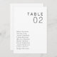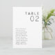 This table number seating chart features a simple sans serif font and modern minimalist design. Easily change the number and the names along with all of the colours to fully match your event.
