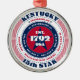 Show your state pride this holiday season with this unique Christmas ornament dedicated to Kentucky, the 15th state. It has red, white, and blue patriotic colours with a circular typography design on a white background. The text includes facts about the state, such as its name, capital, state abbreviation, region, time zone, geographic coordinates, the year of its statehood, and its resident's name. It's a great gift for those who wish to celebrate their state or for those who are feeling nostalgic about their home state.