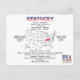 Kentucky. The state of the United States of America. Marked red on the USA map. Useful info about the capital, the largest city, the time zone, as well as about the highest and the lowest points. The number of the population, state's name before statehood and the date of admission to Union, nickname, motto and the state's song. The word Kentucky is decorated with the American flag of blue, white and red colours. Customisable text 50 STATES and the image-text USA at the bottom right corner on the front and on the back. Customisable template text on the back. You can change or delete template texts and you can use your own logo instead of the USA image. This is a postcard for anyone. You can transfer this design to another product of your choice, just use an option to the right of this description. Enjoy and be happy!