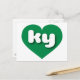 This postcard features a vibrant green heart containing the bold, white, rounded lower case letters ky, a playful abbreviation for Kentucky, the bluegrass state. The reverse side of the postcard is blank, awaiting your handwritten sentiments or customised text.