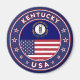 Badge of Kentucky with flag of Kentucky and flag of USA colors, rounded shape.