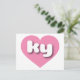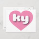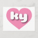 This postcard features a vibrant pink heart containing the bold, white, rounded lower case letters ky, a playful abbreviation for Kentucky, the bluegrass state. The reverse side of the postcard is blank awaiting your handwritten sentiments or customised text.