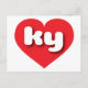 This postcard features a vibrant red heart containing the bold, white, rounded lower case letters ky, a playful abbreviation for the state of Kentucky, the bluegrass state. The reverse side of the postcard is blank, awaiting your handwritten sentiments or customised text.