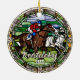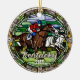 Cute faux stained glass horse racing scene, personalizable trip souvenir. Great for Christmas and family vacation keepsake, or honeymoon keepsake.