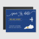 You chose a special place for your wedding. Now it's time to celebrate it with this keepsake save the date magnet card, featuring a silhouette map and a tiny plane headed to your destination. To move the heart to the place of your wedding, click personalise and then "customise further."