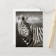 Kenya. Black & white of zebra and plain. Postcard