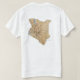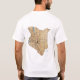 An editable title and slogan accompanies the shield and spears motif over black, red and green bands of the Kenyan flag on the front of this t-shirt. The back displays a detailed map of Kenya.