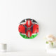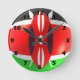 Wall clock flag of Kenya design. You can customise this wall clock with any text of your choice. Should you require any help with customising then contact us through the message link on this page, Kenyan flag wall clock.