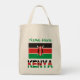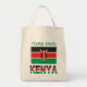 Tote bag showing the Kenyan Flag with the word KENYA below in the colours of the flag. Above, add your name, in green letters, for a personalised touch or gift. Design shows on both sides of bag. Great fun to tote to a family reunion.