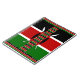 The design showcases the clear, horizontal stripes of black, red, and green with the iconic Maasai shield and spears at the centre. The entire main image is encompassed by a seamless border composed of repeated miniature Kenyan flags, adding remarkable depth, detail, and patriotic flair. This design is perfect for those who appreciate the classic flag look but want an artistic, layered presentation to display their heritage.