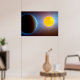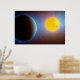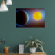 This artist's conception depicts the Kepler-10 star system, located about 560 light-years away near the Cygnus and Lyra constellations. Kepler has discovered two planets around this star. Kepler-10b is, to date, the smallest known rocky exoplanet, or planet outside our solar system (dark spot against yellow sun). Kepler-10c is the larger foreground object.