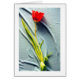 The elegance of a single tulip is captured in the gentle sway of the stem and the curl of the leaf.