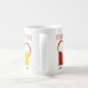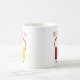 A mug with two, smiling, condiment packets. The ketchup and mustard characters are smiling at each other in front of a red and yellow heart. The words can be customised.