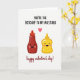 This greeting card shows two cute condiment bottles centered on a plain white background. A shiny red ketchup bottle with a red cap stands next to a golden-yellow mustard bottle with a yellow cap, and they look like best buddies. Each one has small black dot eyes, big crescent smiles, and soft pink blush on their cheeks, like they’re a little shy and happy. A single pink heart floats above and between them, tying the pair together in a sweet way ❤️. Across the top, the text “YOU’RE THE KETCHUP TO MY MUSTARD” appears in black, all-caps block letters that are easy to read. Near the bottom, “happy valentine’s day!” is written in dark red cursive script with a friendly, handwritten feel 💌. The bright red and yellow colors stand out strongly against the white space, keeping the focus on the message of affection 🍫. Hope it helps you share kind Valentine’s Day sentiments with someone you care about.