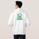 White hoody with kettlebellsireland.com shamrock logo on the back and green kettlebellsireland kettlebell on the front.