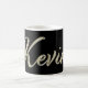 A very beautiful personalized cup / coffee cup / tea cup in whitegold lettering look on black for Kevin.