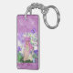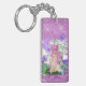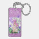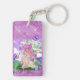 Young little girl sitting with flowers and butterflies. Purple magnet.