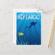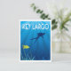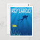 Key Largo modern illustration features a diver silhouette, seaweed, a fish, and sun rays coming through the water.