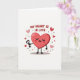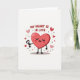 This Valentine's Day card shows a shiny red heart character standing in the middle, smiling with closed eyes and light pink cheeks. It has thin black arms and legs, and one hand holds up a small gold key with a tiny heart shape at the top. Around the heart, several small hearts in pink and dark red float nearby, along with a few little sparkle marks. The background is plain white, which keeps the focus on the heart and the key. Near the top, the card says “MY HEART IS IN LOVE” in thick, hand-drawn black lettering. The overall scene feels sweet and romantic, like a simple way to say you’ve fallen for someone 💘❤️.