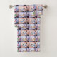 The colourful pattern on this Towel Set was made from an original photograph of a bicycle parked along a street in Key West, Florida. The bicycle has a basket in front of the handlebars, and serves as classic Key West transportation. The photo is done in four colour schemes, red bike, blue bike, green bike and yellow bike, with backgrounds in muted shades of peach, mauve, aqua and blue.