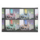The colourful, original design on this Pillowcase Set was made from an original photograph by ZoeSPEAK of a bicycle parked outside a shop in Key West, Florida. Clothing from the shop hangs on the open door behind the bicycle. The photo is done in four colour schemes, red bike, blue bike, green bike and yellow bike, with corresponding clothing colours. The backgrounds are in muted shades of mauve and olive greys, and the overall background is a marbled black.