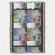 The colourful artwork on this Throw Blanket was made from an original photograph by ZoeSPEAK of a bicycle parked outside a shop in Key West, Florida. Clothing from the shop hangs on the open door behind the bicycle. The photo is done in four colour schemes, red bike, blue bike, green bike and yellow bike, with corresponding clothing colours. The backgrounds are in muted shades of mauve and olive greys, and the overall background is a marbled black.