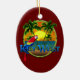 Key West beach sunset painting with palm trees, round bamboo frame, and a colourful parrot.