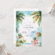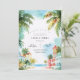 This wedding invitation features a beach scene in Florida Keys where a beach is filled with palm trees and local greenery, with key wet houses\stores vibes.