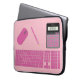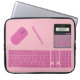 This unusual and quirky Laptop Case features a computer keyboard with pink keys and white lettering, a pink mouse, calculator with pink keys and white lettering and matching pink pen. The background and nameplate text can be changed to suit your own requirements.