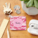 This keychain is shown in a pink camo print design with a sample name, customise this item and change the sample name to yours.