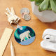 A cute polar bear (Ursus maritimus), done in a simple primitive, or naive style, walks on the polar ice, the Aurora Borealis (Northern Lights) glow brightly in the background. Customise by adding your own text on the reverse side.