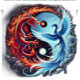 This artwork depicts a fiery red dragon and a radiant blue phoenix intertwined in a yin-yang formation, symbolising balance, strength, rebirth, and harmony between opposing forces.