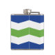 Flask with a design with the flag of Burlington, Vermont. A blue, white, and green flag