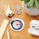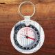 Printed on one side of a standard button that is securely attached to a sturdy keychain