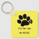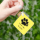 Keep your paws off my keys! is the text scratched beneath the print of a polydactyl cat'a paw. On back is a white area to hold your customised contact information.