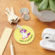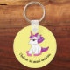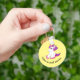 Keychain with cute unicorn and text "I believe in smart unicorns". The unicorn has hair in pink and purple colors and wears pink glasses. The design is customizable.